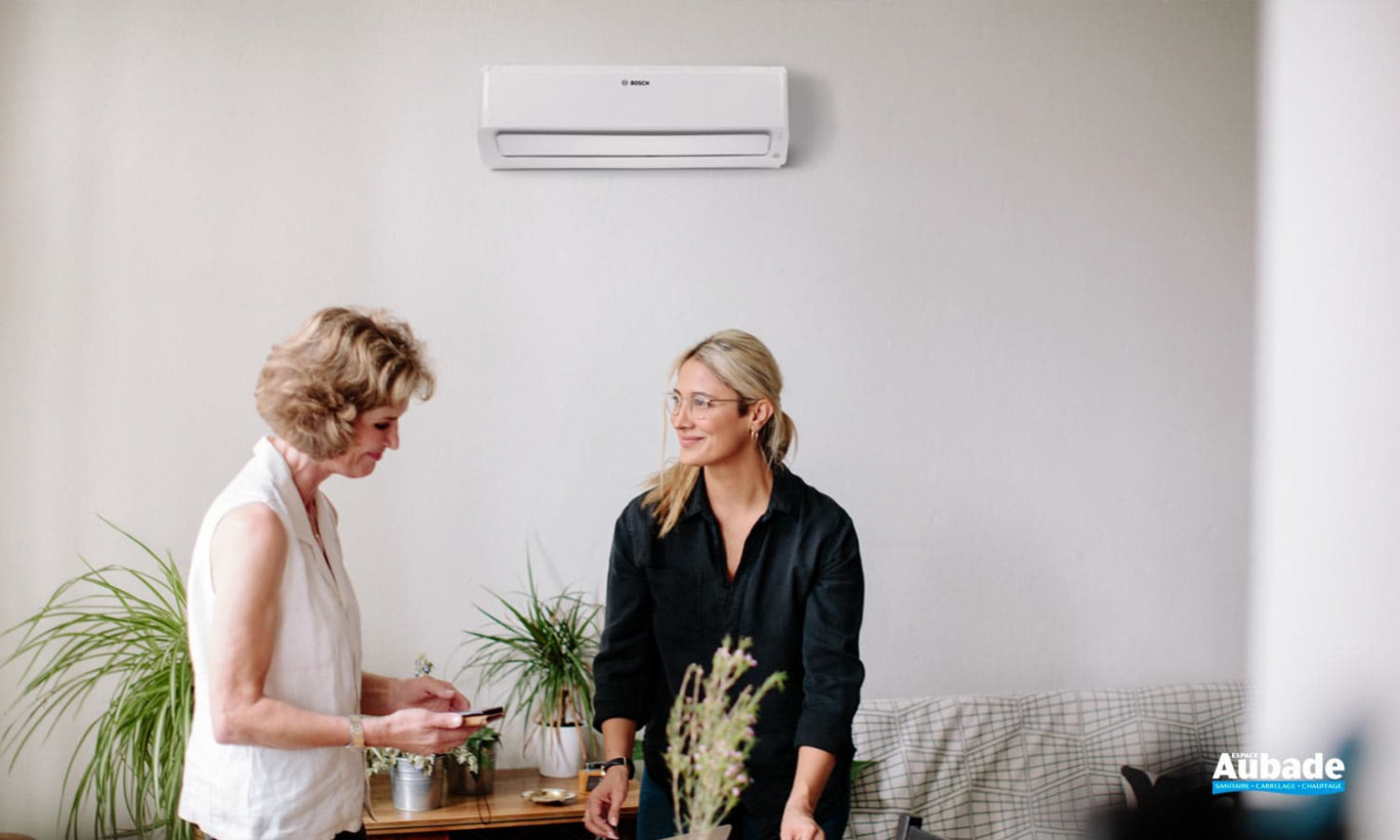La marque Bosch vous propose une climatisation composée de plusieurs unités avec sa gamme Climate Class 6000i. Ce système compatible avec la pompe à chaleur réversible se compose d’une unité intérieure et d’une unité extérieure… Elles sont toutes les deux capables de rehausser votre niveau de confort thermique et l’amener vers un rafraîchissement ou un réchauffement sur-mesure.